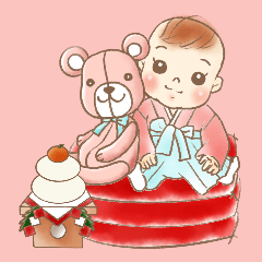かわいい赤ちゃんの毎日使えるスタンプ。 泣いても笑っても、何をしてもキュート!!! 仲良しのクマちゃんといつも一緒だよ。