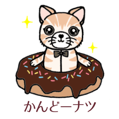 マンチカンの茶々くんのスタンプ。観劇好きで時々ダジャレを言ったりします。